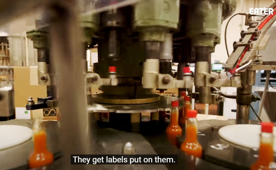Соус готов и его дозируют в бутылочки. (Дизайн бутылки основан на дизайне одеколона 19-го века.)